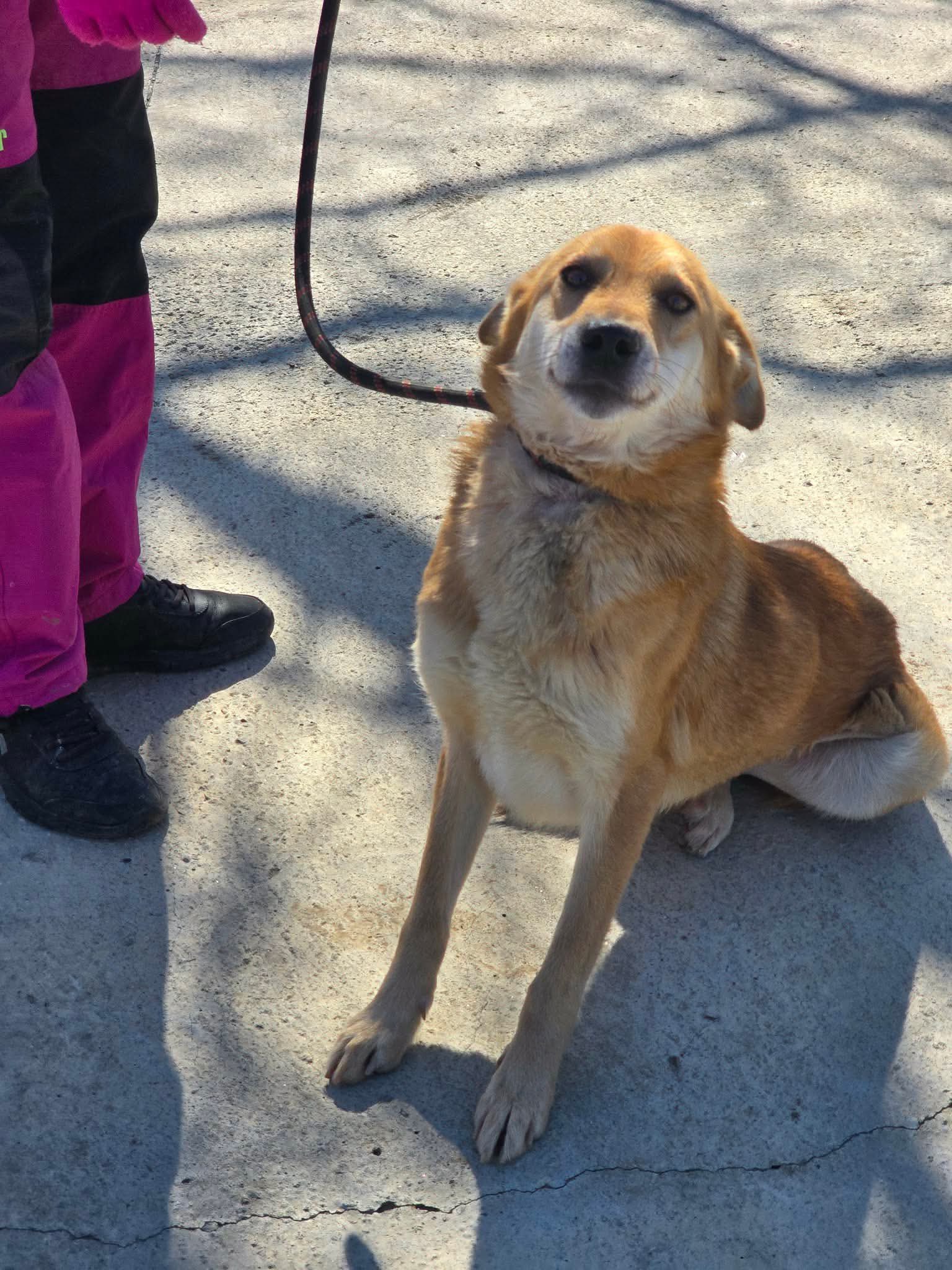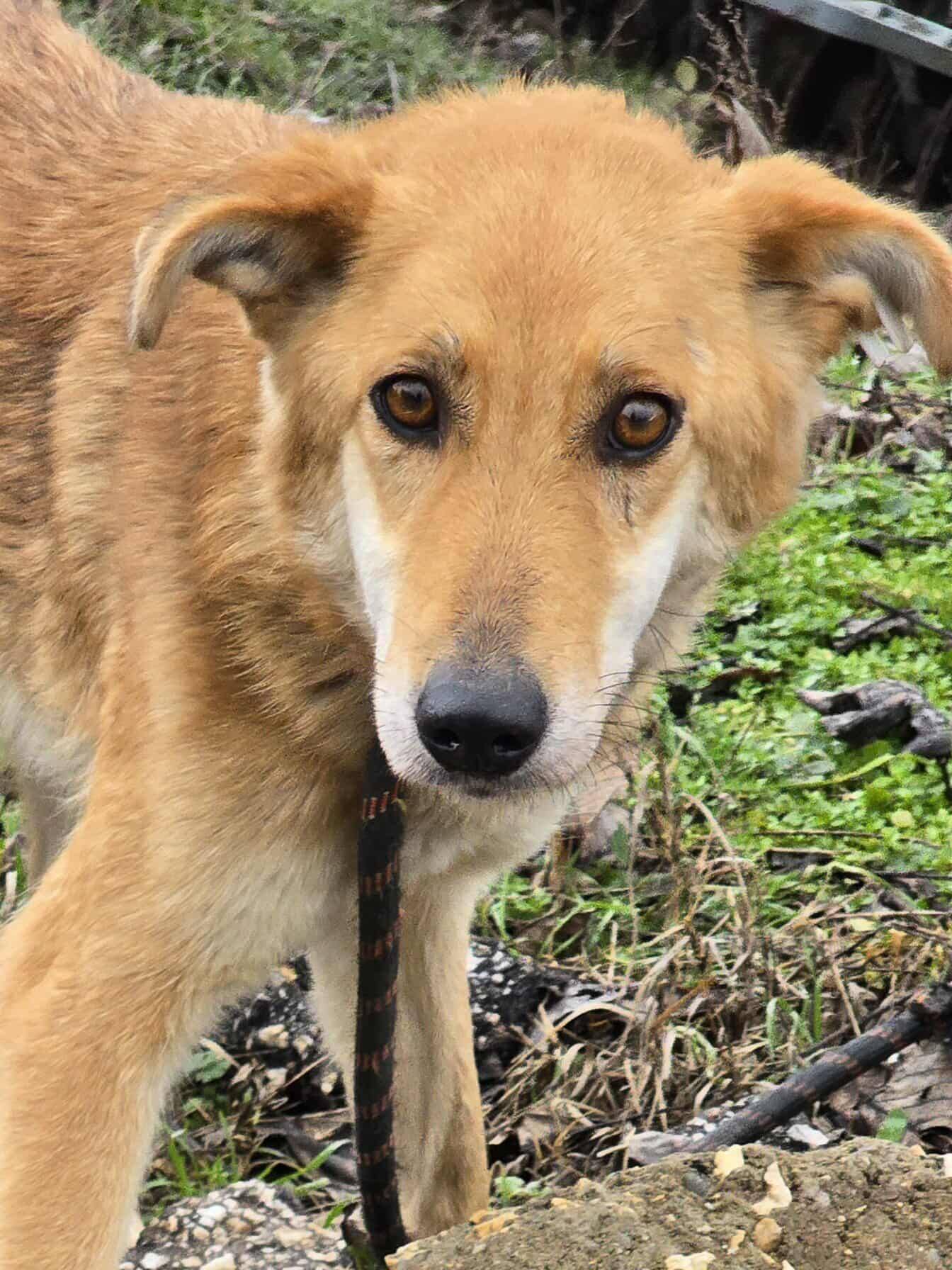Lina ist eine junge Hündin mit einer traurigen Vergangenheit. Gemeinsam mit zwei Hunden lebte sie in einem Haus, jedoch nicht im sicheren Zuhause, sondern angekettet im Garten. Eines Tages schloss der Besitzer das Haus ab und verschwand. Die Hunde blieben zurück, tagelang ohne Futter und Wasser.